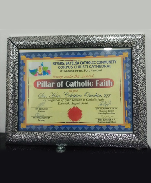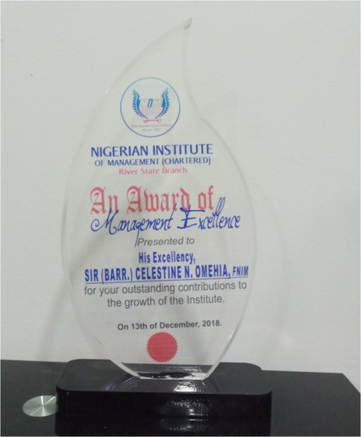 Sir Celestine Omehia has over the years received several Awards from various organizations in recognition of his contribution to governance and humanity in general. Among these Awards Includes: